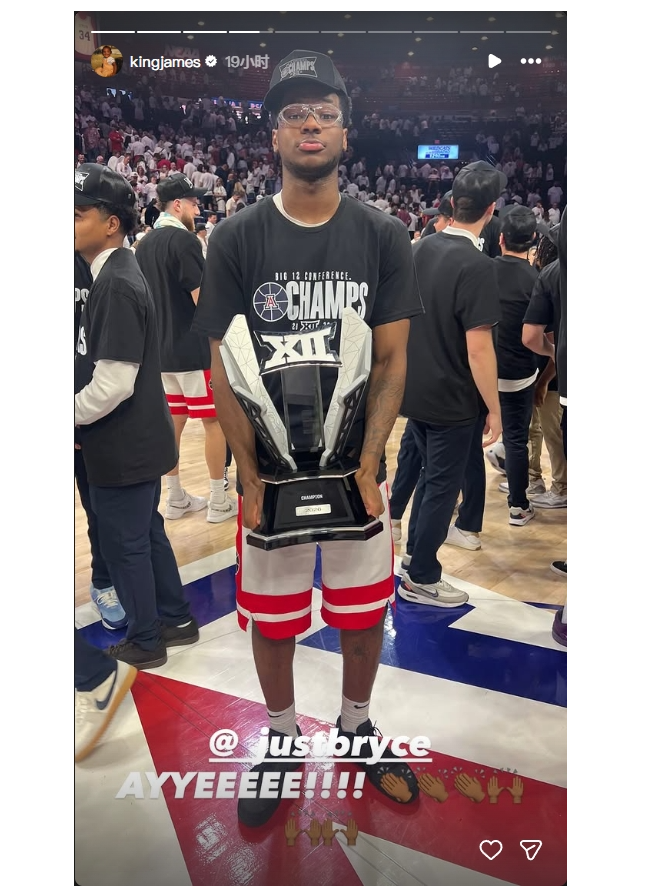 • 詹姆斯躺冠兴奋转发 布莱斯夺冠捧杯照引热议