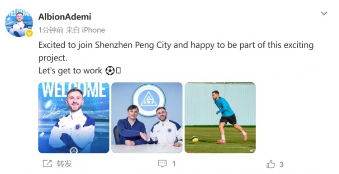 阿代米谈加盟新鹏城:“成为这个令人兴奋项目的一部分,我感到非常高兴。”