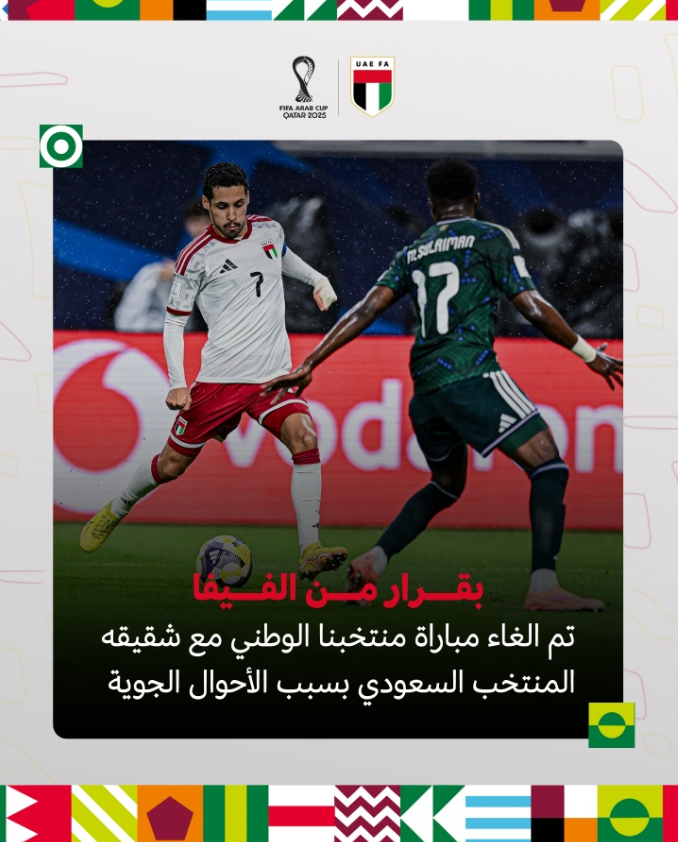 直播吧12月19日讯 阿拉伯杯季军战沙特对阵阿联酋的比赛因突发天气状况被迫终止,赛事官方随后确认本场比赛取消。 本场比赛上半场双方战成0-0平局,中场休息期间当地突遭强雷暴天气,导致场地条件与能见